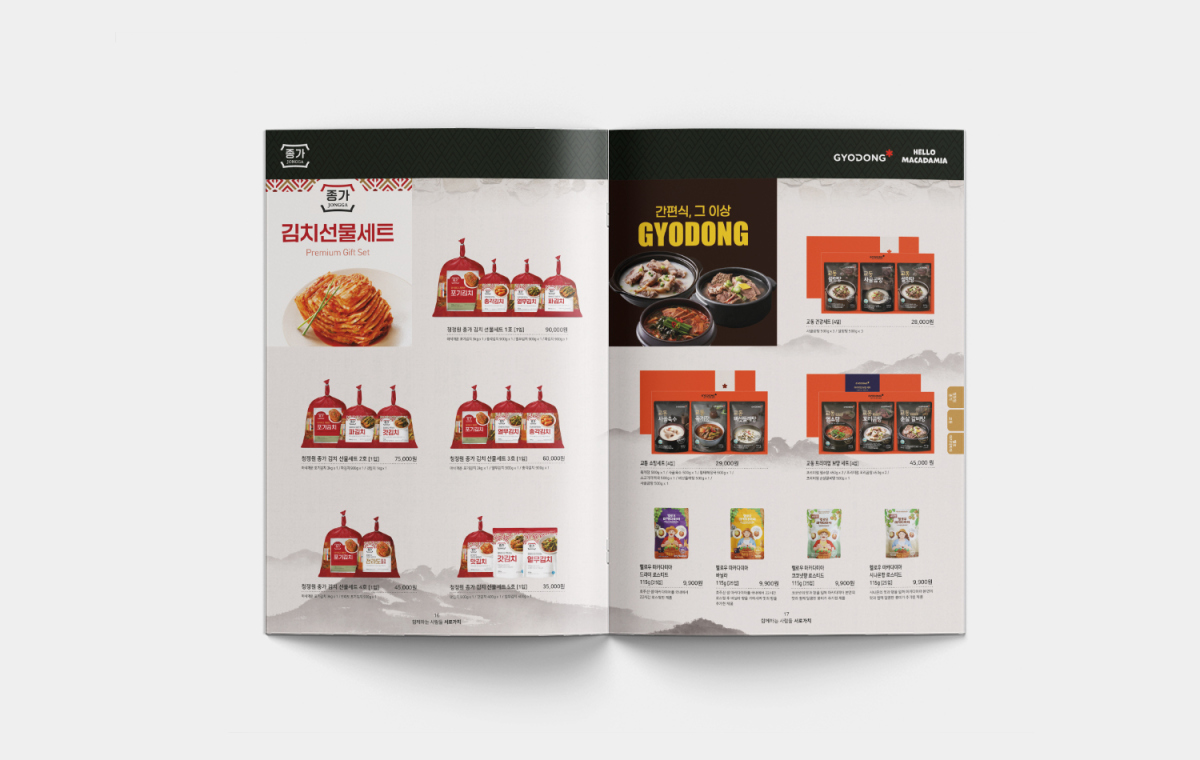 설, 추석 등 명절을 맞이하여 시즌별로 제작되는 선물세트 카탈로그