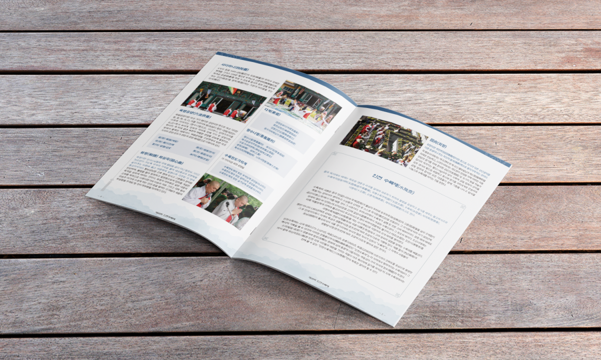 전통 문화 보존회에서 제작된 무형문화재 소개 카탈로그